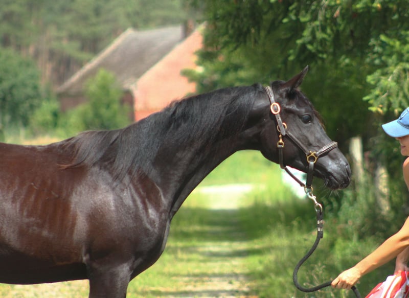 Beautiful, black homozygous 2024 colt looking for the best home! He is a nice young male, strong built with good movements. Final estimated height is approximately 157/158 cm; currently, he is 145 cm at 1.5 years old. Interesting old Polish bloodlines, mixed with the best Egyptian lines such as Thee Desperado, Bey Shah, Bey El Jamaal... Khalif is a prospect for breeding but mainly as a future riding companion for trails or endurance because of his top endurance sire's line (Wagram****, Palas****, Hadban Enzahi, etc.) and well-balanced and brave character. He is closely related to 120/160/210 km horses, for example: Ro Shy Moon - recent winner of the 160 km Dubai and speed record holder. Ro Patagonia - 3rd in CEN 160 km HH President Cup UAE. Half-brother Jaskier is a 2x winner in 120 km prestige races in UAE. His uncle Maestro (half-brother to sire) was 5th in CEI*** 160 km Castiglione Dl Lago and 13th in CEI*** 210 km Samorin. His aunt Sokolda (full sister of sire) was 2nd in CEI* 100 Schweich, 3rd in CEI** 120 km Fontenbleau. And many, many more world top horses!! Khalif is a very people-oriented horse, calm, easy, and very friendly. Curious and brave. Very well handled. His mother is a bombproof horse. Registered in PASB, DNA tested, microchipped, etc. Price + 8% VAT More info on WhatsApp +48 513 179 245 https://www.black-arabians.com/