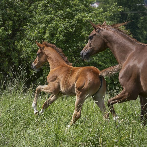 Un poulain primé au charisme particulier, un vrai accroche-regard. Solide et correct, élevé pour le sport. Sa mère est une jument primée VZAP. Son père A Magic Man of Kossack a été pendant deux ans l'étalon le mieux noté de l'année. Il est également étalon primé VZAP. Sous la selle, il se montre sous la selle et prêt à la performance. Ses deux parents ont obtenu des notes élevées pour la qualité de leurs allures. Elijah présente donc de bonnes conditions dans toutes les directions. Il est élevé de manière robuste et affectueuse dans de grands pâturages. Il grandit avec quatre poulains de son année de naissance. Plus d'informations sur la page des Arabes du Vogelsberg. Photos : Marixx Film & Fotografie, Sabrina Geisel, Maria Sens