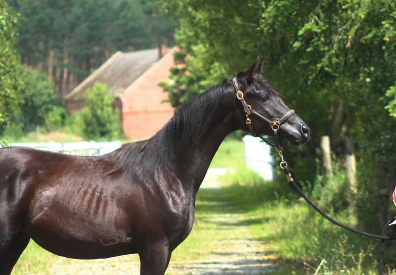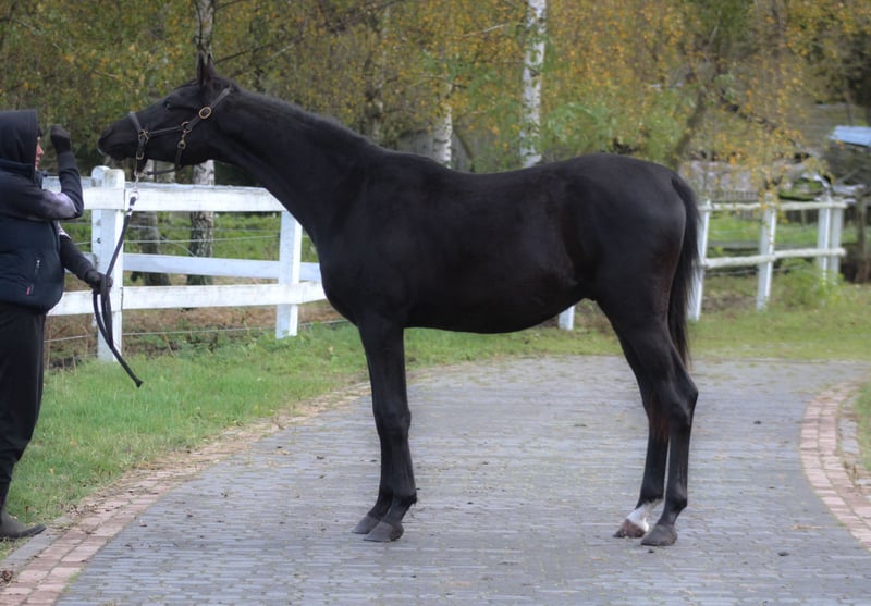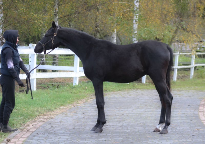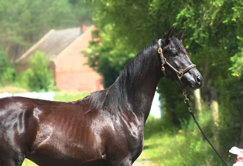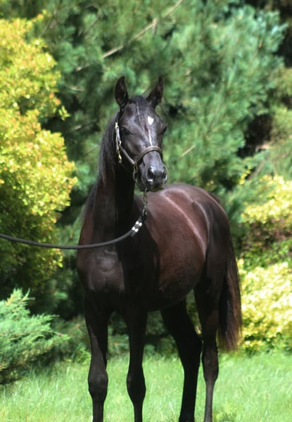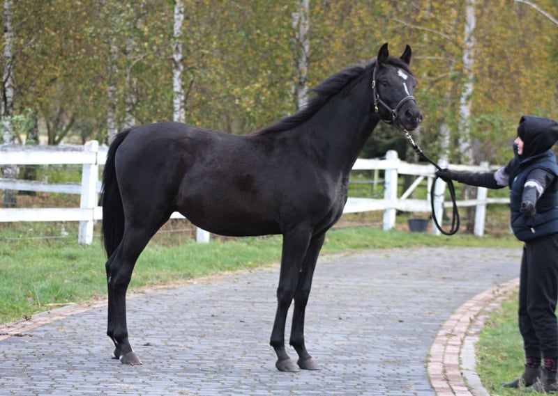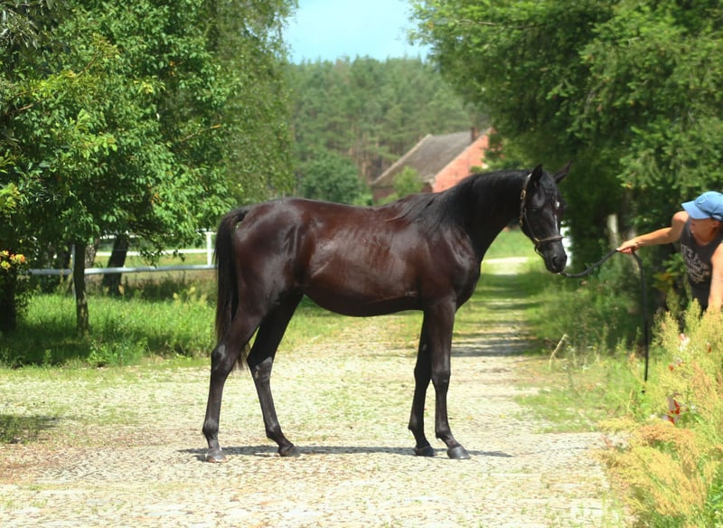 Beautiful, black homozygous 2024 colt looking for the best home! He is a nice young male, strong built with good movements. Final estimated height is approximately 157/158 cm; currently, he is 145 cm at 1.5 years old. Interesting old Polish bloodlines, mixed with the best Egyptian lines such as Thee Desperado, Bey Shah, Bey El Jamaal... Khalif is a prospect for breeding but mainly as a future riding companion for trails or endurance because of his top endurance sire's line (Wagram****, Palas****, Hadban Enzahi, etc.) and well-balanced and brave character. He is closely related to 120/160/210 km horses, for example: Ro Shy Moon - recent winner of the 160 km Dubai and speed record holder. Ro Patagonia - 3rd in CEN 160 km HH President Cup UAE. Half-brother Jaskier is a 2x winner in 120 km prestige races in UAE. His uncle Maestro (half-brother to sire) was 5th in CEI*** 160 km Castiglione Dl Lago and 13th in CEI*** 210 km Samorin. His aunt Sokolda (full sister of sire) was 2nd in CEI* 100 Schweich, 3rd in CEI** 120 km Fontenbleau. And many, many more world top horses!! Khalif is a very people-oriented horse, calm, easy, and very friendly. Curious and brave. Very well handled. His mother is a bombproof horse. Registered in PASB, DNA tested, microchipped, etc. Price + 8% VAT More info on WhatsApp +48 513 179 245 https://www.black-arabians.com/