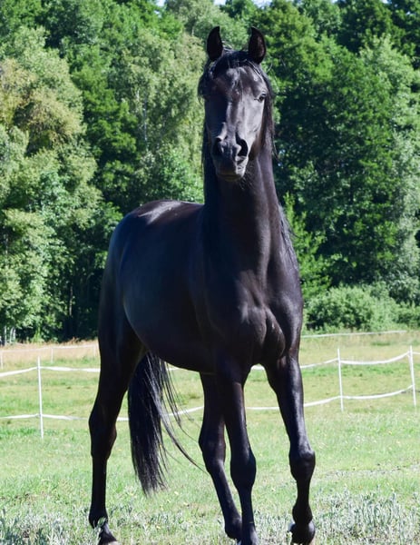 Beschikbaar te koop Knappe homozygote zwarte ruin Edmond Bey Epiranda / Fawor x Zenobius Bey / Tymoteus Bey Geboren in 2022 Zeer kalm temperament, geweldige beweging en makkelijk in de omgang Zoekt een goed thuis Voor meer informatie stuur me een bericht via WhatsApp