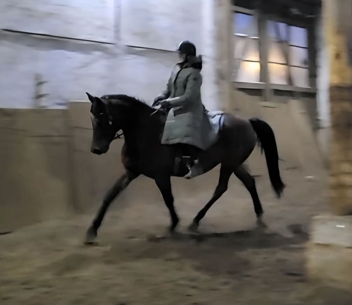 Zum Verkauf steht die 9-jährige Halbaraber-Stute El Luisa. Geb:16.06.2016 Mutter: Latina WS ( Vater: Landrebell / Muttervater: Tiro) Vater: El Montasar ox (Vater: El Nabila B ox / Muttervater: Neman ox) El Luisa ist in allen drei Grundgangarten geritten und kennt das Reiten in der Halle, auf dem Platz sowie im Gelände. Sie wird sowohl alleine als auch in der Gruppe geritten, ist im Gelände ohne Begleitpferd jedoch noch etwas unrotiniert. Kleine Sprünge im Gelände sowie auf dem Reitplatz hat sie bereits kennengelernt. Luisa besitzt einen sehr herzlichen Charakter und ist dem Menschen gegenüber äußerst zugewandt. Sie zeigt sich als wahres Naturtalent in der Zirzensikarbeit und bringt hier viel Freude sowie bereits ein gutes Repertoire an Lektionen mit. Im Sommer lebt sie 24/7 auf der Koppel in einer gemischten Herde. Im Winter steht sie nachts in ihrer eigenen Box und hat tagsüber täglichen Paddockgang gemeinsam mit der Herde. Da sie in einer kleinen, lang bestehenden Herde mit nur wenig Pferdewechsel aufgewachsen ist, wäre sie am besten in einem ähnlichen Zuhause aufgehoben. Ihr zukünftiger Mensch sollte Spaß an abwechslungsreicher Arbeit haben und über etwas Grunderfahrung verfügen. Ihr Vollblütertemperament macht sie zu einer energetischen und leistungsbereiten Freizeitpartnerin. Bei Interesse oder weiteren Fragen meldet euch gerne.