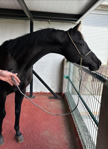 Kiara es una yegua pura raza árabe de capa negra del 2014, está preñada y confirmada de un gran semental y está para parir en Mayo. De carácter es super buena, se deja tocar por todo, sube perfectamente al remolque , recortar los cascos… Ella es talla árabe aunque dá potros muy grandes y de capa negra.