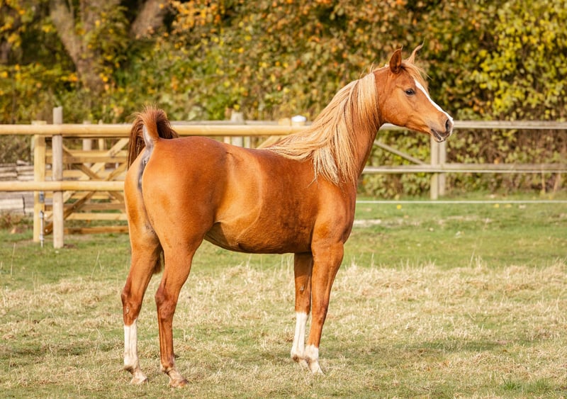 Waliyyah APN ist eine wunderschöne, fuchsfarbene OX-Araberstute mit beeindruckenden, schwebenden Gängen, wobei besonders ihr Trab hervorsticht. Sie zeigt deutlich ihre Fruchtbarkeit und ist eine sehr gute Mutter. Im Jahr 2023 hat sie einen schön bewegten, Kreuzungsfohlen von einem Akhal Teke-Hengst, Mudaris, zur Welt gebracht. Aufgrund ihres Charakters, ihrer Gänge und ihres beeindruckenden Pedigrees eignet sie sich hervorragend für die Zucht. Waliyyah wurde in ihrer Vergangenheit bereits geritten und hat an Distanzritten bis zu 40 km teilgenommen. Aufgrund einer frühen Verletzung als Fohlen ist ihre Eignung zum Reiten jedoch eingeschränkt. Sie ist seit fünf Jahren nicht mehr unter dem Sattel gewesen, könnte aber möglicherweise wieder für gemütliche Freizeitritte vorbereitet werden. Ihr Hauptpotenzial liegt jedoch als Zuchtstute oder Begleitpferd. Sie ist eine wunderschöne Stute mit ebenso beeindruckendem Geist. Intelligent, gelassen, sensibel – sie besitzt einen erstaunlichen Ein- und Ausschalter. Ihr vollständiges Pedigree ist hier einsehbar: https://beta.allbreedpedigree.com/waliyyah-apn-T8jqPh62/pedigree