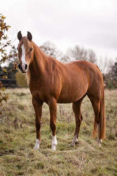 Waliyyah APN is a beautiful chestnut OX Arabian mare with incredible floating gaits, where her trot in particular can be highlighted. She clearly shows heat and is a very good mother. She has produced a beautiful well-moving crossbred in 2023 by an Akhal Teke stallion, Mudaris. She is very well suited to breeding due to her mind and gaits, plus an impressive pedigree. Waliyyah has been ridden earlier in her life and has started distance events up to 40 km. However, du to an early injury as a foal has limited her suitability for riding. She has not been under saddle in 5 years, but could perhaps be started again for easy leisure riding. Her main potential though is as a broodmare or a companion horse. She is a beautiful mare with an equally beautiful mind. She is smart, cool, sensitive with an incredible on/off switch. Her full pedigree can be seen here: https://beta.allbreedpedigree.com/waliyyah-apn-T8jqPh62/pedigree