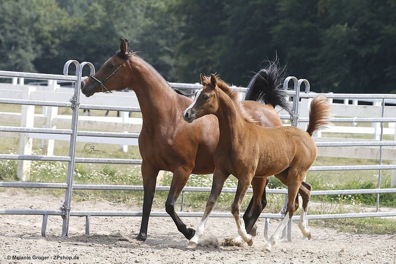 Ze względu na rezygnację z hodowli AV, sprzedajemy poniżej wartości: Wyjątkowa okazja dla znawców: na sprzedaż nasza nagrodzona klacz Camar Qapuera, oceniona na wysokie 83 punkty. Obecnie prowadzi przepiękną kasztanowatą klaczkię od elitarnego ogiera Arian Shah (foal z wyróżnieniem VZAP), nie pokryta na 2026 rok. Może opuścić naszą stajnię jesienią. Na życzenie można również nabyć źrebię. Ten wybitny koń trafia tylko do osób z doświadczeniem w pracy z pełnej krwi koni i odpowiednimi warunkami utrzymania. Pod presją może zacząć się kiwać, poza tym jest przyjazny i łatwy w obsłudze. Cena z źrebięciem do negocjacji.