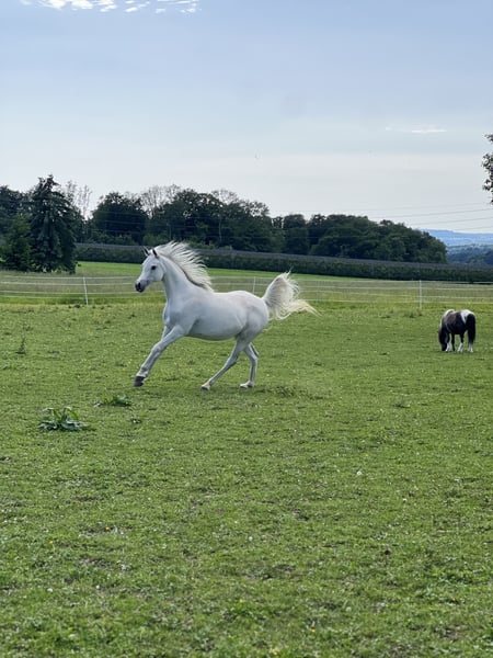 Murjiana S ist eine elegante 13 jährige Vollblutaraber Stute mit aussergewöhnlichem weichen Trab. Leider sucht sie einen neuen Platz da ihre Besitzerin aus gesundheitlichen Gründen nicht mehr reiten kann. Murjiana hat einen sehr aufgeschlossenen Charakter, sobald Murjiana mit dem neuen Besitzer ein Vertrauensverhältnis aufgebaut hat, wird sie sehr anhänglich sein. Bisher wurde Murjana englisch geritten. Aufgrund einer sehr guten Abstammung, kann Murijana auch für die Zucht genutzt werden. Abstammung Vater: El Chall WR Mutter: Moonlight Kiss (Vater von Mutter MV Ekstern) Keine Verkauf ins Ausland, nur an sehr guten Platz zu vergeben Bei weiteren Fragen oder Besichtigungstermin dürfen Sie mich gerne kontaktieren. Preis nicht verhandelbar