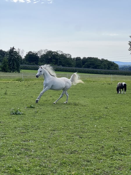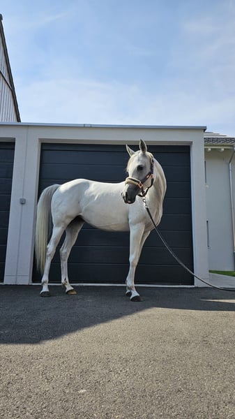 Murjiana S is an elegant 13-year-old Thoroughbred Arabian mare with an exceptionally soft trot. Unfortunately, she is looking for a new home as her owner can no longer ride due to health reasons. Murjiana has a very open character; once she has built a trusting relationship with her new owner, she will be very affectionate. So far, Murjiana has been ridden in English style. Due to her excellent pedigree, Murjiana can also be used for breeding. Pedigree: Father: El Shall WR Mother: Moonlight Kiss (Mother's father: Ekstern) No sale abroad, only available for a very good home. If you have any further questions or would like to arrange a viewing, please feel free to contact me. Price is non-negotiable.