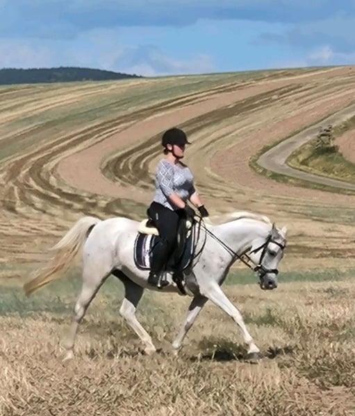 Arabka z pełną dokumentacją poszukuje nowego wyzwania! ES Valentina OX to wyrazista, inteligentna i samodzielna klacz z charakterem. Jest zaszczepiona, odrobaczona i regularnie prezentowana u kowala. Valentina ma 1,48 m wzrostu i urodziła się w marcu 2011 roku. Jeźdzona jest na poziomie A zarówno w ujeżdżeniu, jak i skokach. Idealnie nadaje się na rekreację, rajdy długodystansowe lub wędrówki konne, jednak nie jest koniem do ciężkiej pracy ani dla początkujących jeźdźców. Jest bardzo pewna siebie na terenie, niezależnie od tego, czy jeździ się samemu, czy w grupie. Valentina naturalnie prezentuje szerokie, eleganckie ruchy, które pod jeźdźcem są bardzo przestrzenne i komfortowe w prowadzeniu. Klacz mieszka w warunkach pastwiskowych w stadzie. Jest bardzo ładną, solidną klaczą, u mnie pełni również funkcję liderki stada. Zna również trzymanie w boksie i dobrze sobie z tym radzi. Nowym osobom jest nieufna, wymaga cierpliwego podejścia i pracy nad zaufaniem. Nie da się jej łatwo manipulować i zdecydowanie nie jest koniem typu „sztampa”. Dobrze się ładuje na przyczepę i bez problemu jedzie w transporcie. Valentina to świetna klacz hodowlana, miała już 2 źrebięta. W 2021 roku brała udział w elitarnym pokazie klaczy w Alsfeld i została tam wpisana do księgi hodowlanej. Dlatego też uważamy ją za interesującą propozycję dla hodowców. Dostępny jest film!