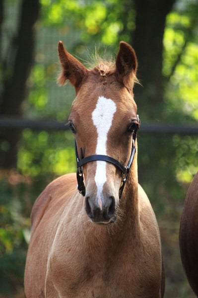 Te koop aangeboden wordt een prachtige merrieveulens met een ster-foalpremie. Wij zijn verheugd u een schitterende volbloedarabier merrieveulens van dit jaar met volledige papieren van het ZSAA aan te bieden. Deze betoverende merrieveulens komt van een volbloedarabierhengst die succesvol heeft deelgenomen aan de 30-dagen-test in Handorf en door zijn uitstekende eigenschappen overtuigt. De moeder van het veulen heeft een verbandspriem ontvangen en is ook op meer dan 20-jarige leeftijd nog zeer fit; zij is een echt zielsgenoot van een paard. Onze merrieveulens is regelmatig ontwormd, heeft al positieve ervaringen opgedaan bij de hoefsmid en groeit gelukkig op in een kudde op de weiden. Ze vertoont een levendig en evenwichtig karakter, perfect voor toekomstige uitdagingen. Leeftijdsgericht is ze volledig ongestuurd en klaar om veelzijdig ontwikkeld te worden. De verwachte volwassenhoogte van het veulen is circa 155 cm. Wij zoeken niet alleen een koper, maar vooral de ideale mensen die dit bijzondere merrieveulen een liefdevol thuis kunnen bieden. Ook aan fokkers graag. Bij interesse horen wij graag van u! Voor verdere vragen of het maken van een bezichtigingsafspraak staan wij u graag ter beschikking.