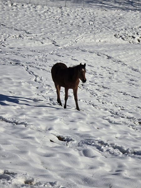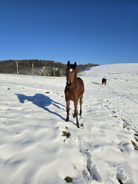 Braunes, liebes Vollblutaraber Stutfohlen, geb. am 18.06.2025, sucht ein neues Zuhause. Sie hat Abstammungspapiere, beherrscht das Fohlen-ABC und kennt Hängerfahren. Sie ist sehr menschenbezogen und kommt aus der Herde meist als Erste auf einen zu. 🐴