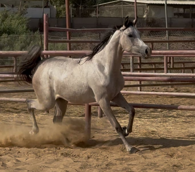 For sale: a stunning purebred Arabian mare! Born in 2024, with an exceptional grey coat. Standing at 15.4 hh, she is perfect for shows and exhibitions. This mare boasts an elegant appearance and excellent condition, with proven performance in competitions. An excellent choice for those who value high quality and prestige. Please feel free to contact me for more information!