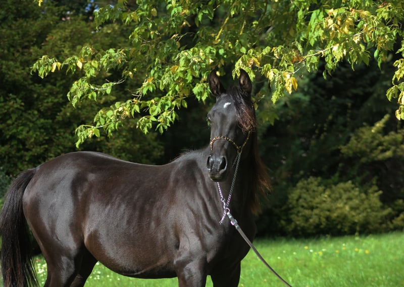 Hermosa potranca de 1,5 años, de color negro y homozygous por ascendencia, en busca de un nuevo hogar. Se prevé que será alta, con una estatura final aproximada de 156/157 cm. Cuerpo correcto y sólido, movimientos excepcionales, cabeza bonita. Pedigrí muy interesante con campeones como Simeon Sadik, Dubai Pasha, Thee Deesperado, The Minstril, Wagram, Probat, entre otros. Potencial para reproducción, exhibiciones o monta/endurance (pedigrí de alto nivel en endurance). Registrada en el Libro de Caballos Árabes de Polonia, microchipada y con prueba de ADN. Precio +8 % IVA WhatsApp +48 513 179 245 https://www.black-arabians.com/