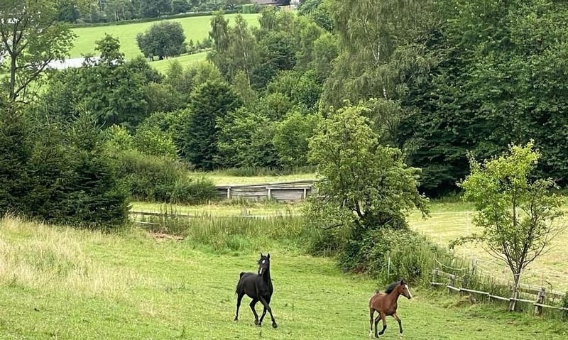 Unsere schöne Medina ist sehr korrekt und harmonisch gebaut, mit raumgreifenden Bewegen und toller Abstammung. Da wir unseren Bestand verkleinern müssen, hoffen wir, dass sie bei jemandem ihre Bestimmung findet und zur Pferdeliebe des Lebens wird. Sie liebt es, Zeit mit ihren Menschen zu verbringen und zB Bodenarbeitsübungen zu erlernen oder Spaziergänge zu unternehmen. Trotz ihres jungen Alters, kennt sie Offenstall - Boxen und Weidehaltung. Aber natürlich auch regelmäßige Wurmkuren und den Hufschmied. Durch ihre Aufzucht im Herdenverband, ist sie super sozialisiert. Neuen Dingen ggüber ist sie sehr aufgeschlossen und von Anbeginn gehörte sie bei uns zu der Gruppe Fohlen von speziell coolem Charakter. ( cooler selbst als ihre Mutter und Großmutter:) Medina eignet sich perfekt für jemanden, der ein aufgeschlossenes und anhängliches Seelenpferd sucht - egal, ob für sich allein oder die ganze Familie! Gern bieten wir eine Kombination von Teil - und Ratenzahlung an. Transport in ihr neues Zuhause kann auf Wunsch angeboten oder organisiert werden Wir freuen uns auf Anfragen und Besichtigungstermin Vereinbarungen, bitte mit vollständigem Namen und Wohnort ( ü18!) Die Schnappschüsse zeigen Medina, in verschiedenen Altersstufen ( und ihre Eltern und Großmutter. Fotos von G.Aymar, C.Carrera, SiR, A.Sagrabelny )