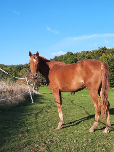 Maliah ist am 03.06.2023 geboren. Sie hat eine sehr interessante Abstammung von Jenisseij und mütterlicherseits von Psytadel. Bestechend schöne Fuchsfarbe. Sie ist temperamentvoll und mutig, neugierig darauf Neues zu lernen