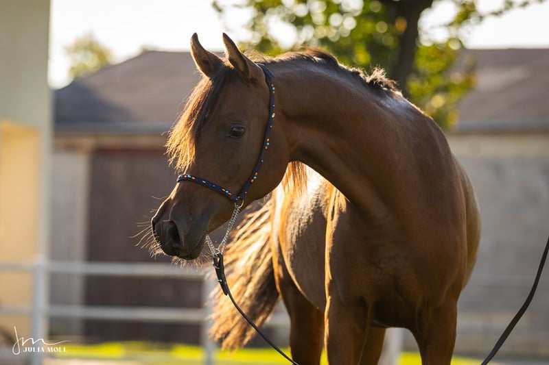 The mare is already familiar with transporters and has been show-trained. She has excellent movements and is very eye-catching.