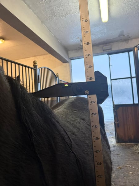 Beautiful 4 yo. mare, black homozygous by parentage looking for a new home. Correct solid body, Super movements. She is very tall, estimate final height 160 cm, currently she is already solid 158 cm (last picture) ! Nice, exotic face, beautiful long neck, Correct legs and hoofs. Almost no white at all , all black body and legs only a small star. Interesting pedigree Showy atittude . Registered in PASB. Ready for breeding season. WhatsApp + 48 513 179 245