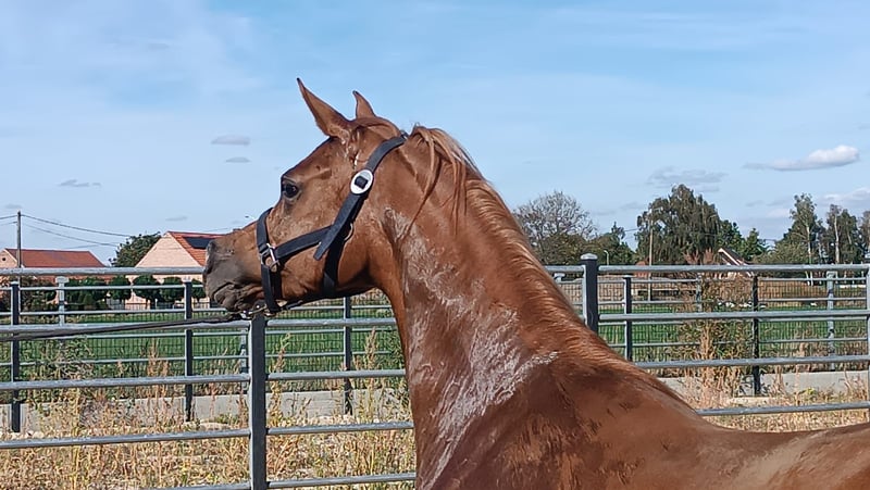 Schöne Fuchsstute mit die Blutlinien von Fa El Rasheem, WH Justice und DA Valentino by Versace. Mehr Infos auf Anfrage.