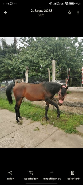 Ich möchte meine elegante Vollblutaraber-Stute zum Kauf anbieten. Sie ist eine wunderschöne dunkelbraune Stute, geboren im Jahr 2020. Sie besticht durch ihre anmutige Erscheinung, ihr bezauberndes Wesen, ihre kluge Art und ihren unerschrockenen Mut. Mit einem Stockmaß von 153 cm ist sie perfekt für den Distanzsport geeignet , aber da sie sich noch am Anfang ihrer Ausbildung befindet, wären auch alle möglichen Sparten der Reiterei mit ihr möglich. Die Stute ist gesund, motiviert und zeigt ein ausgeglichenes Temperament. Sie verfügt über gute Grundgangarten, wurde vierjährig im Beritt schonend angeritten, pausierte seit dem (Bodenarbeit, Spaziergänge) und ist bereit für die weitere Ausbildung. Sie stammt direkt vom Züchter und ich trenne mich schweren Herzens von ihr, da sie hier bei mir mit ihrem Halbbruder nicht ganz glücklich ist. Sie hat einen Nabelbruch, der die nicht beeinträchtigt, aber für die Zucht ungeeignet ist. Bei Interesse stehe ich gerne für weitere Informationen und eine Besichtigung zur Verfügung.