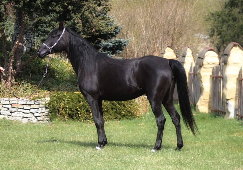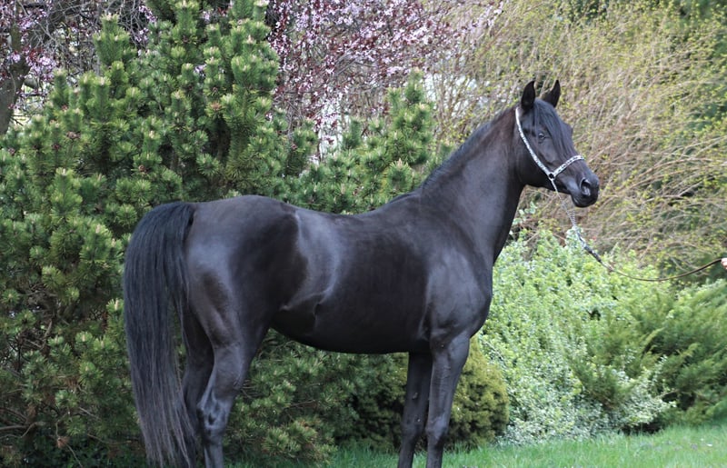 Beautiful 6-year-old mare, black homozygous by parentage, seeking a new home. Solid, correct conformation with exceptional movement. Lovely, calm temperament. She is by the straight Egyptian stallion Al Shuhruf. Her interesting pedigree includes champions such as two-time Simeon Sadik, Dubai Pasha, Thee Desperado, and others. She produced a stunning filly with remarkable movement, which we are keeping for breeding purposes. She is currently in foal to our Polish black homozygous stallion, due in March 2026. Registered in the Polish Arabian Stud Book, microchipped, DNA tested. Price + 8% VAT WhatsApp +48 513 179 245