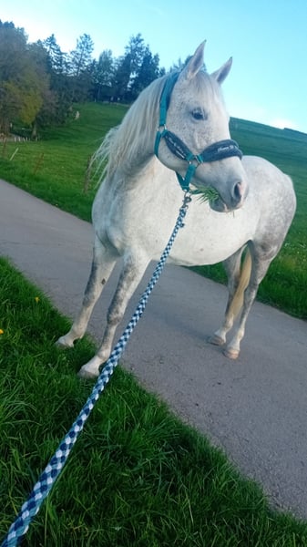 Baby ist eine 9-jährige Stute. Sie ist sehr gut im Umgang mit Kindern. Sie liebt es, gelobt zu werden, und gibt stets ihr Bestes.