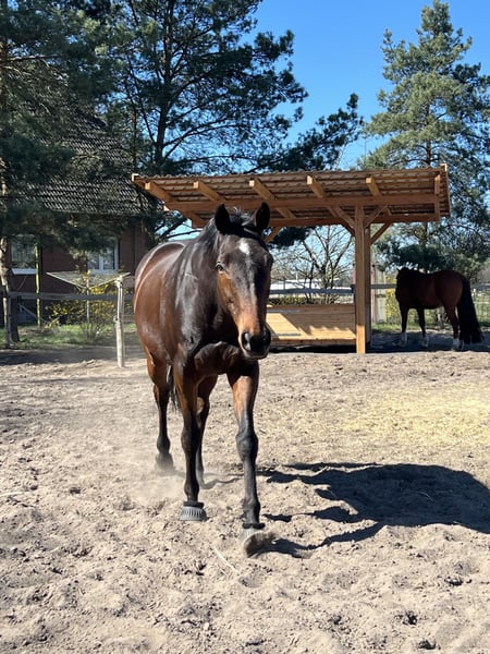 For sale is a wonderful 10-year-old Thoroughbred gelding with beautiful basic gaits and a lot of charm. Unfortunately, I have not had the time for a while, which is why Ecki has not been worked regularly for about a year. For this reason, I have made the difficult decision to let him go to loving and supportive hands. The most important details at a glance: Age: 10 years Training: Leisure horse with solid basic training Area of use: Leisure / Dressage / Jumping Special features: Beautiful basic gaits, shows joy in jumping, good for loading Current status: Not ridden for a year, needs to be brought back into work. Ecki has the best prerequisites - he now needs someone with experience, patience, and joy in working to be reintroduced to training. He learns very quickly and also enjoys groundwork. Home before price! Inquiries are welcome here via message or at 015254158045.