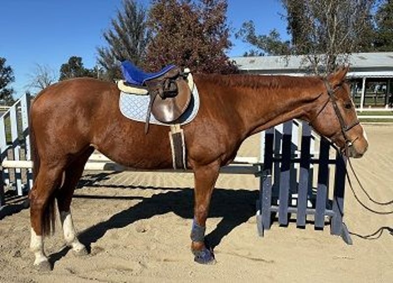 Attention Performance Thoroughbred enthusiasts! If you like the 'off the track' Jumping and Dressage horses, you will love this guy! Proudly Presented by, and in full training with- Clare and Clarity Performance Horses: "C J My Boy": 10 year old, 16.1hh, chestnut, Jockey Club Thoroughbred gelding As you can easily see, C J has an excellent conformation for the Performance Horse world. CJ is certainly the Warmblood-y type of Thoroughbred. He is extremely charming, sweet and personable. C J is enjoyable to be around and to spend time with. He is uncomplicated to work with on the ground and in hand. CJ is currently gaining weight and strength, as he is coming out of a 'holding pattern' after being part of a lesson program. C J has 3 very good gaits. He has wonderful inherent rhythm and balance. He has a big, sweeping walk; a nice, ground-covering trot; and a naturally uphill, 'rocking horse' canter. C J is 100% sound, sound, sound. He has a lot of bone; and big, beautiful feet. Clean legs; no history of health or injury issues. C J is shod in front and barefoot behind. He is educated under saddle and over fences. C J has coursed nicely 2'6"-2'9". He is more of an Equitation type of Jumper. He could also really excel and shine in the Eventing disciplines. Located at Clare's Training and Sale barn in Petaluma, Ca. Full description, including carrots, can be seen on the website: https://sites.google.com/site/clarityperformancehorsesales/free-rescue-re-home-horses