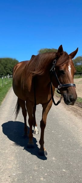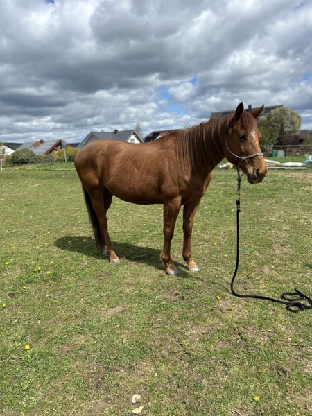 We are downsizing our herd and are therefore saying goodbye to some truly lovely horses. In this listing, I would like to introduce you to Big Red. We acquired him as a companion for another gelding. We know that he was previously taken out of training due to a laminitis (racehorse), and in his new home, he has been worked extensively from the ground. Clicker training is very familiar to him. At his old stable, he was also ridden in the indoor arena by experienced riders, but I cannot guarantee this. I am selling him solely as a companion horse. His character is very polite and respectful. He is dominant but fair. He can also stay alone for quite a while.