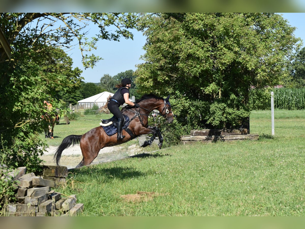 I am reluctantly selling my English Thoroughbred gelding. He is absolutely well-behaved, whether in training, at competitions, or in daily life. He jumps over every obstacle, whether it’s poles, fillers, or cross-country jumps; he always wants to get to the other side. At competitions, he has placed up to E level, and in training, he is already working on an A course and individual A** jumps. Breed-typical, he has a good forward drive, but he is never reckless and always wants to please. Everything is fun with him, whether it’s groundwork, trail riding, or working in the arena. He is not the most resilient, so I am looking for someone for him for whom (competition) riding is not the top priority. This is not an urgent sale, and he is only to be placed in the very best hands—no dealers or riding schools.