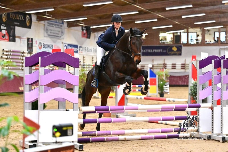 Vendo con mucho pesar mi caballo inglés de sangre pura, un macho castrado. Es absolutamente manejable, ya sea en el entrenamiento, en el concurso o en la vida cotidiana. Salta sobre cualquier obstáculo, ya sean barras, saltos de base o saltos de campo, siempre quiere llegar al otro lado. En los concursos ha logrado colocarse hasta en E, y en el entrenamiento ya está listo para un recorrido de A y algunos saltos de A**. Típico de su raza, tiene un buen impulso hacia adelante, pero nunca es descontrolado y siempre quiere complacer. Con él, todo es divertido, ya sea en trabajo en el suelo, paseos o trabajo en el trail. No es el más fuerte de nervios, por lo que busco a alguien para él, para quien la equitación (en concurso) no sea lo más importante. No es una venta urgente y solo se entregará en las mejores manos, no a comerciantes ni escuelas de equitación.