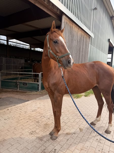Influencer, ein 4 jähriger, 158 cm Wallach. Influencer ist direkt aus dem Gestüt zu mir gekommen und befindet sich aktuell in der Ausbildung zum Reitpferd. Er kam relativ unerfahren zu mir und zeigt sich aber aktuell absolut brav und ohne jeglichen Unarten bei der Ausbildung. Er ist an den Anfängen seiner Ausbildung und wird aktuell alle 2- 3 Tage auf dem reitplatz geritte. Er lässt sich brav führen und longieren und ist absolut Herdenverträglich. Influencer hatte bisher ein ruhiges Leben im Gestüt und auf der Koppel und ist spät angeritten. Sicher braucht er noch einen Menschen der ihn weiter in seiner Ausbildung begleiten kann. Er ist umgänglich und dem Menschen gegenüber freundlich aufgeschlossen. Für ihn stehen noch alle Wege offen ; ob als Dressur-, Vielseitigkeits- oder Springpferd. Aber auch als reines Freizeit- und Geländepferd. Er lernt gerne dazu. Sollte aber natürlich aufgrund seines Ausbildungsstandes nur Reitern die ihm noch etwas beibringen können. Er zeigt bisher keinerlei Unarten bei Ausbildung. Gerne kann er jederzeit kennen gelernt werden. 01633276779