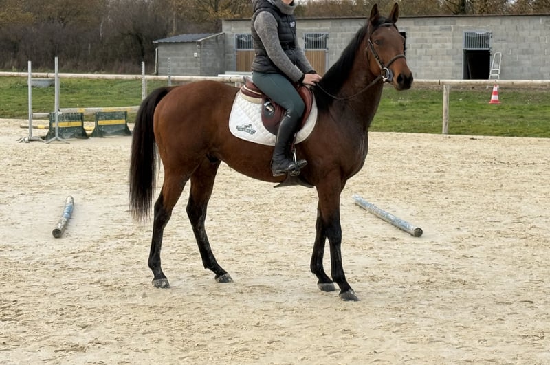 🐎 À vendre – Hongre Pur-Sang – 5 ans – toise environ 1m55-1m60 Hongre bien mis au 3 allures, passe des barres au sol, il a sauté en liberté ☺️ Très gentil, proche de l’homme et agréable au quotidien. Il sort seul ou accompagné en balade Peut vivre seul au pré comme avec d’autres chevaux ou au box, sortie paddock, obligatoire Polyvalent, il pourra convenir pour : CSO CCE Loisir sportif Balade ✔️ Manipulations & soins Transport OK À jour : maréchalerie, vermifuges, vaccins, ostéopathe