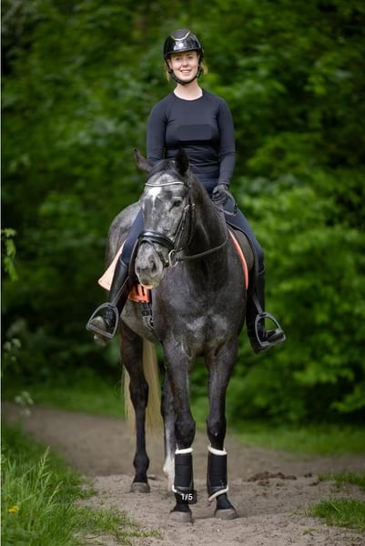 Z wielkim bólem w sercu wystawiam tę ofertę i oferuję mojego najdroższego Henry'ego na sprzedaż lub pełnoetatowy leasing. Henry to angielski pełnokrwiasty ogier o wysokości 157 cm, mający 4 lata, choć na pierwszy rzut oka trudno to zauważyć. Spędziłem z nim prawie rok, podczas którego bardzo się rozwinął zarówno fizycznie, jak i mentalnie. Przyjechał do mnie już z ujeżdżonym, i wspólnie osiągnęliśmy etap, na którym został wytrenowany i opanował podstawowe umiejętności jako koń rekreacyjny. Niestety, im dalej posuwamy się w treningu, tym bardziej widzę, że podczas jazdy nie czujemy chemii – co jest dla mnie bardzo bolesne, bo Henry to naprawdę wspaniały koń. Po dłuższym namyśle doszedłem do wniosku, że zasługuje na innego właściciela, z którym będzie mógł nawiązać lepszą więź. Henry jest bardzo grzeczny podczas czyszczenia, zawsze chętny do kontaktu i ma w sobie odrobinę charakteru – czasami bywa uparty, jak typowy dwulatek. Mimo to jest bardzo cierpliwy i tolerancyjny: nie ma problemu z wizytami weterynarza, kowala czy jeźdźca. Zawsze słyszeliśmy, że jest niezwykle łagodny i przyjazny! Podczas jazdy Henry radzi sobie świetnie, zawsze stara się dać z siebie wszystko i szybko się uczy. W ujeżdżeniu opanował podstawy, a obecnie ma już odpowiednią równowagę i tempo, co pozwala mu na coraz lepsze podporządkowanie się podczas jazdy. Traktowaliśmy trening spokojnie, skupiając się na tym, żeby jazda była przyjemnością, a nie tylko na dokładności. W hali woli raczej wolniejszą pracę niż zbyt szybkie tempo. Na wycieczkach na zewnątrz jest bardzo spokojny i pewny siebie. Nie boi się niczego, potrafi iść na czele, a nawet jeśli inny koń odpadnie do tyłu, Henry potrafi się zatrzymać i go zatrzymać – zawsze ma hamulec. Potrafi też bardzo szybko biegać, jeśli tego chcesz! Gdy Henry miał dwa lata, niestety doznał urazu ścięgna w jednej z tylnych nóg. Jego poprzednia właścicielka dała mu czas na pełne wyzdrowienie przed rozpoczęciem treningu ujeżdżeniowego. Obecnie nie odczuwa żadnych dolegliwości. Jego kopyta są nieco wrażliwe, dlatego na zalecenie kowala założono mu podkowy. Poza tym kopyta radzą sobie dobrze, choć Henry nie przepada za ich noszeniem. Jest w pełni zdrowy. Badanie kliniczne nigdy nie było wykonane, ale jest możliwe przy poważnym zainteresowaniu (k.k). Może być w stadzie (jest raczej podgryzany, więc potrzebuje dobrze zbilansowanej grupy) i może stać na trawie. Oferuję go wraz z pełnym wyposażeniem, w tym siodłem. Dla mnie ważniejszy jest dobry dom niż cena, dlatego w przypadku odpowiedniego miejsca jest ona do negocjacji. Czy myślisz, że możesz zapewnić mu odpowiedni dom? Jeśli tak, proszę o wiadomość, w której przedstawisz się, opiszesz, co możesz zaoferować i jakie masz doświadczenie z końmi.