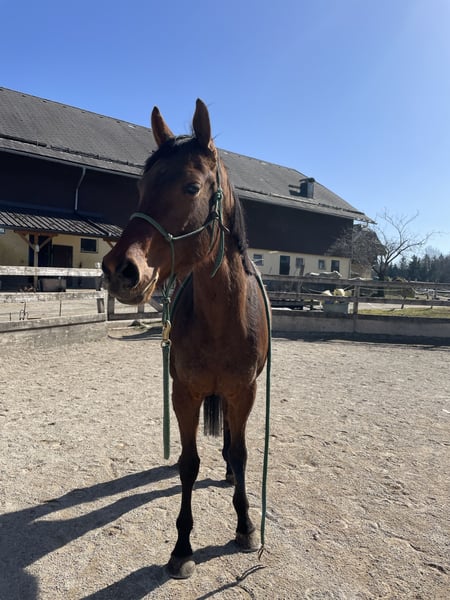 Lucky Moon ist ein sehr lieber, dem Menschen zugewandter Wallach, der für jeden Spaß zu haben ist - Hauptsache, mit dem Menschen sein! Er ist mit Freude bei der Arbeit, wird auch gerne betüdelt, geputzt, gekrault. Im Alltag ist er unkomplizert, brav beim Putzen, Führen, beim Schmied. Kennt Hängerfahren, macht er nicht oft, aber ist kein Thema für ihn. Er lebt in der Herde, klebt aber nicht an anderen Pferden. Manchmal ist er ein bisschen frech, aber er ist nie "schlimm". Lucky Moon ist in allen drei Gangarten seinem Alter entsprechend geritten, kennt Dressurarbeit auf dem Platz. Sein Training ist recht abwechslungsreich, die Basis für alles ist Horsemanship für eine optimale Kommunikation. Wir arbeiten auch vom Boden aus mit ihm, das gefällt ihm. Er ist sehr fein und lernt schnell. Freiarbeit macht ihm auch viel Spaß. Er lässt sich auf die Menschen ein, ist immer freundlich und extrem bemüht, alles richtig zu machen. Nun ist er auf der Suche nach einem liebevollen Zuhause, nach einem netten Menschen oder einer ganzen Familie. Lucky Moon hat großen Arbeitseifer, genug Ehrgeiz. Er passt zu jemandem, der gerne Zeit mit einem netten Lebewesen verbringen will und gemeinsam in eine Zukunft starten möchte. Er ist das perfekte Freizeitpferd zum Reiten, für Bodenarbeit, lange Spaziergänge, Dressurarbeit und Working Equitation. Er mag es, wenn man ihm Aufgaben stellt.