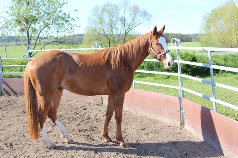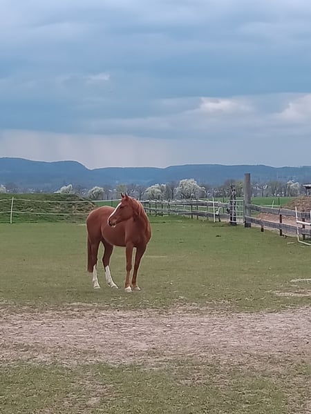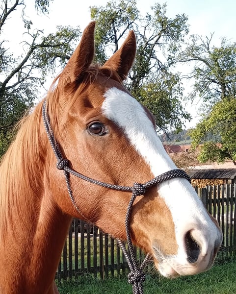 For sale is our charming English Thoroughbred gelding Filou, 7 years old, 158cm tall, with an excellent pedigree: father Red Jazz (USA) and mother Atlantic Cycle. Filou is an unspoiled horse that impresses with his calm and relaxed nature, making him ideal for riders of all experience levels. He has been worked in groundwork with long lines, completed equikinetics training, is familiar with lateral movements, pole work, and free jumping. With further training, he certainly offers a lot of potential for various disciplines. Filou is friendly and open, making him a loyal companion for the whole family. He is socially compatible, prefers smaller herds, and is currently kept in an open stable, which suits him particularly well. We are only parting with Filou due to the discontinuation of our horse keeping. He deserves a loving home where he will continue to be appreciated and developed. If you are interested or have any questions, we look forward to your message!