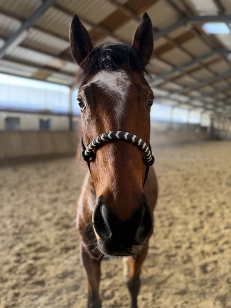 Te koop staat een 7-jarige volbloedhengst (Thoroughbred), ongeveer 1,58 m hoog, kastanjebruin. Afstamming: Elzaam x Oceania Queen Met volledige Weatherbys-papieren, DNA-gecontroleerde afstamming. Hij is rustig en zeer makkelijk in de omgang – voor een volbloed bijzonder ontspannen. Momenteel wordt hij ook gereden door mijn 8-jarige dochter. Onder het zadel toont hij zich ijverig, gemotiveerd en leergierig. Western-gericht basisopgeleid (onder begeleiding van een professional) en met een degelijke basis voor verdere training. - braaf in de omgang, geen ongewenst gedrag - vertrouwd met laden en transport - smederij- en dierenarts-geschikt - beschikt over hoefbeslag - geen wedstrijdervaring - geen renbaanervaring Een coole hengst met een goede instelling en potentieel voor recreatie of verdere opleiding. Verkoop ik met pijn in het hart wegens mijn gezondheid! Bij serieuze interesse graag een bericht.