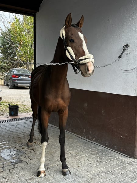 Kastrierter Hengst, englisches Vollblut, 1,65 m groß, 7 Jahre alt. Force Cat ist ein äußerst unkomplizierter, sehr anfängertauglicher Pferd mit einem außergewöhnlichen Charakter. Derzeit springt er problemlos bis 1 Meter. Perfekt für den Einsatz im Gelände, keine Angst vor neuen Situationen, schaut sich nichts auf der Bahn an, fährt selbstständig in den Hänger. Ideal für jemanden, der Vertrauen gewinnen und lernen möchte, oder als Spring- oder Vielseitigkeitsprojekt.