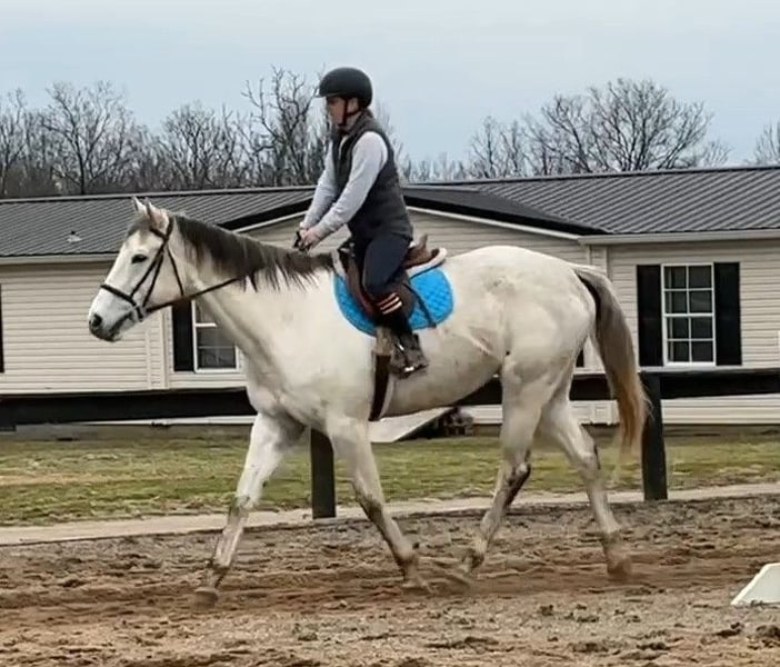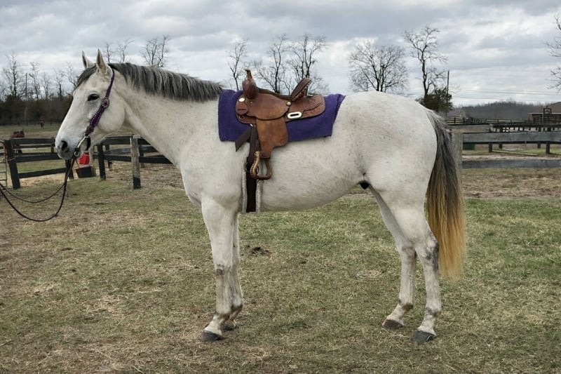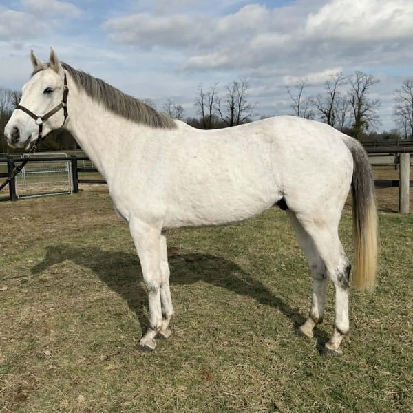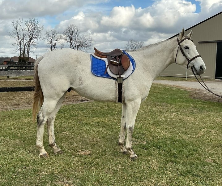 """AVAILABLE ON ONLINE HORSE AUCTION AT www.MagicHorseAuction.com BIDDING OPEN NOW thru TUESDAY | FEBRUARY 3RD! BUY IT NOW AVAILABLE! *Final price will be determined on auction site* CONSIGNOR CONTACT INFO: DEBBIE GRIER #859-272-7751 LOCATION: LEXINGTON, KY""" Owen is a big, beautiful, thoroughbred grey gelding and is VERY quiet and laid back.. He will ride english or western. He loves to walk on trail rides and take it easy. He has a very smooth trot when asked. He will ride in the arena or down the trail. We have done trail obstacles with him and he is very willing to do what is asked of him. He stands 16'2 hands and is a 7 yr old gelding
