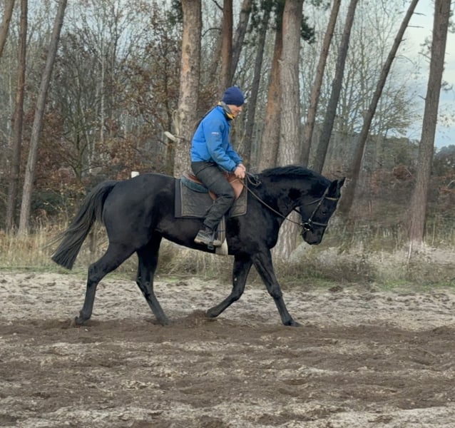 Power ist ein bildschöner Rappwallach mit einem liebevollen Charakter. Power zeigt sich sehr gelehrig bei der Arbeit auf dem Dressurplatz. Er geht problemlos alleine ins Gelände und steht in einer großen gemischten Herde mit Stuten und Wallachen. Er zeigt sich sehr freundlich mit andere pferde und dem Mensch gegenüber sowieso. Er lässt sich mit und ohne Sattel reiten und ist für jeden Spaß zu haben. Leichtfuttriger Wallach der durchaus auch mit Offenstall Haltung zurecht kommen würde. Keine gesundheitlichen Einschränkungen oder Unarten. Gerne bei Interesse per Anruf oder WhatsApp melden 01633276779