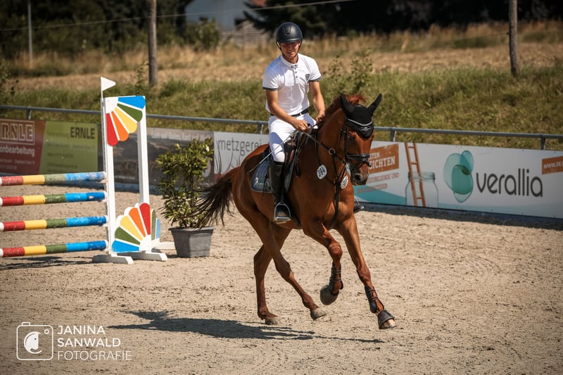 **Sales Advertisement: Thoroughbred Gelding** For sale is a beautiful, athletic Thoroughbred gelding. **Features:** - **Year of Birth:** 2016 - **Color:** Chestnut - **Height:** 173 cm - **Discipline:** Show Jumping He is well-mannered, well-trained, and has an excellent temperament. The gelding is good to ride both in the field and in the arena, showing a lot of potential for show jumping. He has placed in jumps up to 105 cm. If you are interested or need further information, please feel free to contact me. We look forward to your inquiry!