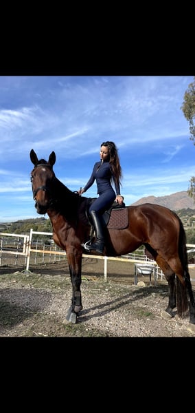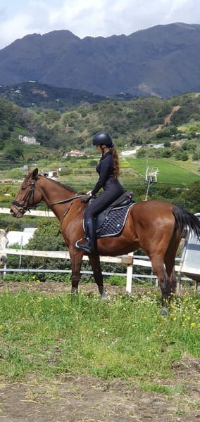 Yegua pura raza inglesa en venta. Saltaba hasta 130cm saltos sueltos, y 1m recorrido. actualmente lleva varios meses sin saltar, entrenando en doma clásica, nivel básico de doma clásica. Muy buen carácter, tranquila, facil a manejar, cuida mucho su jinete. Gano varios competiciones de salto (hasta 1 metro).