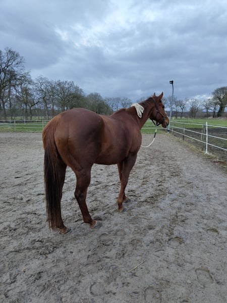 I am selling my beloved mare Juanti with a heavy heart. In my experience, this mare is not suitable for pasture-kept stabling. Temperament: Juanti has a calm demeanor and trusts her handler immensely. She is well-trained, eager to learn, and always fully engaged during work. Appearance: - Color: Chestnut - Date of Birth: February 19, 2014 - Height: 16.1 hh Health: Juanti is fully vaccinated and dewormed. She had her teeth checked by the veterinarian earlier this year. Her hooves are regularly trimmed, and she is barefoot. She has a strong allergy to biting insects; other allergies to insects or grasses are not known. If you are interested or would like more information, please feel free to contact me. Arrange a personal viewing appointment. A fee of €50 will be charged for trial riding to prevent misuse and give genuine prospective buyers the opportunity to get to know a wonderful, unspoiled horse. This fee will be deducted from the purchase price upon contract completion. Please no dealers or riding schools!