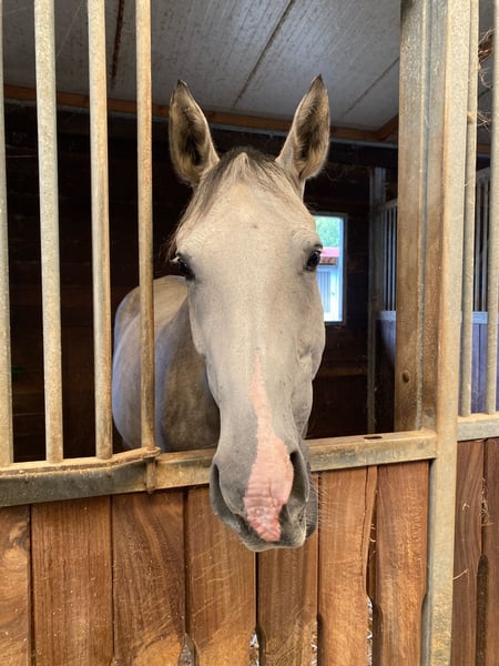 Purchased as a broodmare six months ago, I later learned that the risk for foal and mare during foaling is too high to continue breeding her. We are now looking for a new home for Ponte. She is being sold as a leisure horse with a companion. She will have plenty of turnout, pasture, and horse company. She is a sweetheart to handle and would be suitable for a confident rider as a leisure horse. Quality of care and a good home take priority over price.