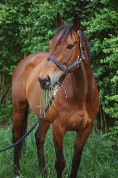 Sulphur is a 13-year-old Thoroughbred mare who truly shines as a leisure and heart horse. She is reliable both alone and in groups when riding in the terrain, eager to move forward, yet always controllable and completely free of bad habits such as bucking or rearing. Character-wise, Sulphur is a very special treasure: very affectionate, extremely cuddly, and attentive. Once she has won you over, she truly does everything for "her" person and approaches riding with great motivation and joy. She forms close bonds and is not a horse that simply "functions," but one with whom you develop a genuine partnership. She is versatile and very solidly trained from the ground, including dual activation, equikinetics, groundwork, and lunging with a double longe line. She loves this work and performs it with focus, finesse, and thoughtfulness. Under saddle, she is well-behaved and reliable, but due to her Thoroughbred nature, she requires a calm, fair, and clear rider’s hand. Sulphur has equine asthma but is completely symptom-free with proper management. She needs dust-free hay and bedding, as well as good air quality. With this care, she remains energetic, happy, and fully suitable as a leisure horse. Her health status is communicated openly and honestly – her well-being is my top priority. I wish for Sulphur a loving home with someone who appreciates her sensitivity, her joy in work, and her big heart, and who can provide her with a horse-friendly, healthy environment.
