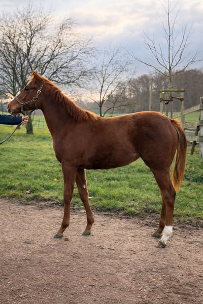 Zum Verkauf steht eine typvolle Jährlingsstute mit vielversprechendem Potenzial und tollen Anlagen für den Sport. La Prada besticht durch ihr neugieriges, freundliches Wesen und toller Bewegung. Sie ist sehr menschenbezogen, gut händelbar als auch schmiedefromm. Sie wächst aktuell in einer Herde mit anderen Jährlingstuten im Offenstall im Vollblutgestüt Hofgut Heymann auf und zeigt dort ausgeprägte Sozialkompetenz. Ihr Vater Amaron, ist ein bewährter Hengst, dessen Nachkommen für Robustheit, Leistungsbereitschaft und guter Substanz bekannt sind. Die Mutter Lips Princess stammt aus der Zucht von Stall Parthenaue, wie der Halbbruder mütterlicherseits, Lips Prince, der im Rennsport mehrfach erfolgreich war. Unter anderem in Ausgleichsrennen über mittlere und Steher-Distanzen. Seine Leistungen liefern Qualität und langfristige Leistungsbereitschaft. La Prada bietet nicht nur Perspektiven für den Rennsport, sondern auch für andere Reitsportdisziplinen, eine Option für Sport- oder Zuchtinteressenten, die ein leistungsbereites und zuverlässiges Jungpferd suchen. La Prada kann gerne nach telefonischer Absprache im Gestüt Hofgut Heymann besichtigt werden. Weitere Informationen und aktuelle Bilder sind natürlich auf Anfrage erhältlich.