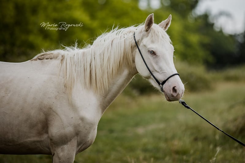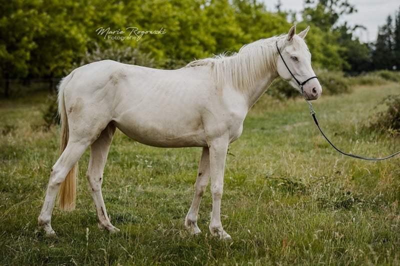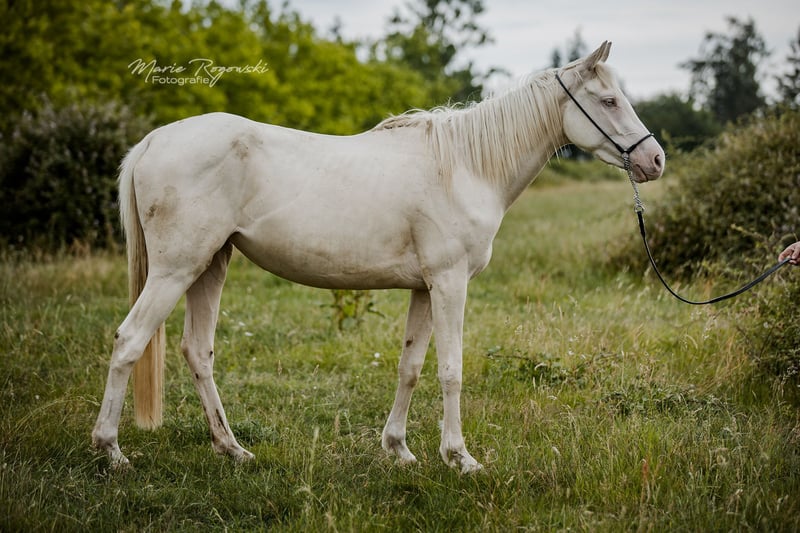Stute | Englisches Vollblut | Cremello | geb. 2022 | 157 cm DANCE IN CREAM xx ist eine harmonische, sozial und neugierig aufgeweckte Vollblutstute mit klarer Erscheinung und gut proportioniertem Körperbau. Sie überzeugt durch ausgeglichenes Wesen im Umgang. Ihr Vater TCF Palladium xx gilt als weltweit erster Smoky-Cream-Vollblüter und wird für korrektes Fundament, harmonisches Exterieur und zuverlässigen Charakter geschätzt. Ihre Mutter Dance in Gold xx ist eine robuste, erfahrene Vollblutstute, die ihre Gesundheit, Gelassenheit und Sozialkompetenz in die Nachzucht weitergibt.