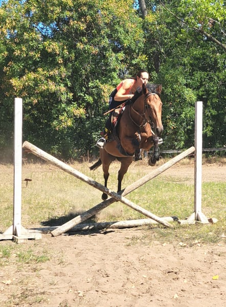 For sale 5 years old filly. She has a very good character, easy for the riding. At home she jump 1 m, never not stop, like it. If interesting, I can sent videos.
