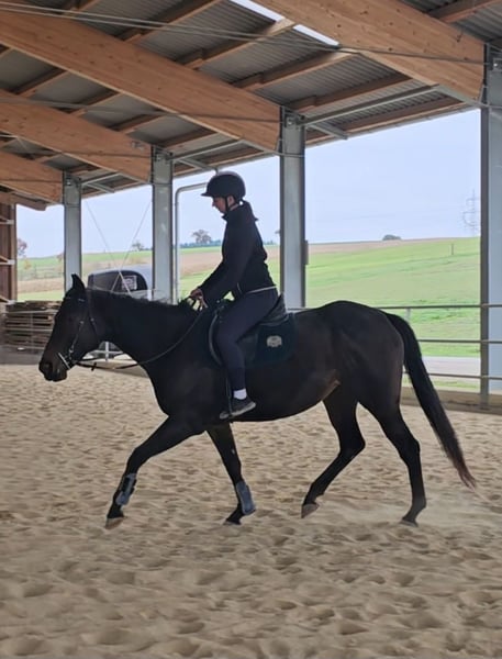 Fearless Trail Partner with Potential for More For sale is a 5-year-old Thoroughbred mare with approximately 16.0 hands. She has been ridden recreationally and is solidly backed. She confidently handles walk, trot, and canter in the arena and responds very delicately to the smallest aids. In the field, she is completely fearless, willingly leads the way, and remains calm on new routes. Cows, tractors, cars, or cyclists are no problem for her at all. Due to her young age, she is not suitable as a beginner horse at the moment. However, with proper training and encouragement, she will undoubtedly become a wonderful partner – she is very eager to learn and picks things up quickly. Unfortunately, she does not feel comfortable in her current stable, which is why we are looking for a new, suitable home for her. Due to her position in the herd (low rank), she sometimes shows a bit of stall vices, for example when tacking up. This also causes her to become increasingly impatient and she has started to test her rider by not moving forward during riding. She is only to be placed in experienced, caring hands – quality over price. We are looking for someone who gives her time to settle in and works with her consistently but fairly. Ideally, she would have a box with all-day turnout, so she can relax and develop optimally. If you are interested, we look forward to hearing from you.