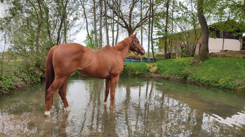 Navaja- 7jährige Vollblutstute abzugeben (Dawn Approach – Big Shuffle), 162cm groß, super freundlich und rittig. Sie stand nun 1 Jahr barhuf auf Koppel wegen Hufgelenksentzündung im Nov. 2024. Röntgen und Gelenkflüssigkeit ist in Ordnung, noch leicht lahm auf hartem Boden. Mit gutem Beschlag wieder anschiebbar oder aber für die Zucht. Extrem netter Charakter, anhänglich und verständig, gut im Freizeitbereich geritten, kennt Haltung im Freizeitstall und momentan Dauerkoppel ohne Probleme. Schmiede - und verladefromm, im Umgang super unkompliziert und gut erzogen. Hübsches, kräftiges Pferd, rittig und willig in allen Lebenslagen. 1500€ Tel.: 0151 – 17285960