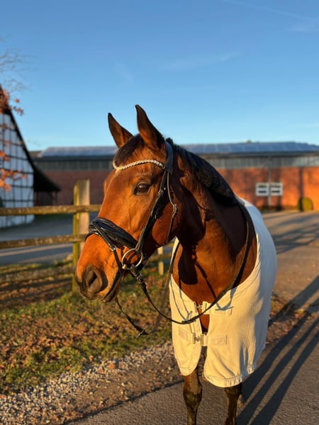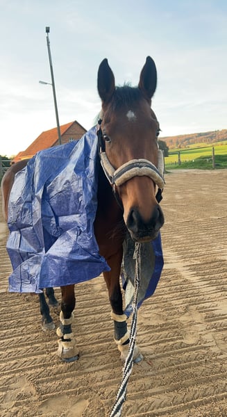 Schweren Herzens verkaufe ich meine 8-jährige Vollblut-Stute „Sterni“ (Stockmaß ca. 1,60 m). Ich besitze Sterni seit 5 Jahren, doch leider finden wir reiterlich nicht mehr richtig zusammen. Vom Boden aus ist Sterni sehr lieb und unkompliziert. Sie kann ohne Probleme von Kindern geputzt, geführt und longiert werden – dabei ist sie entspannt und gemütlich. Unter dem Sattel zeigt sie sich sensibel und kommt mit Druck schlecht zurecht. Sie ist daher absolut kein Anfänger- oder Kinderpferd. Beim Reiten kann sie in Stresssituationen „hochspringen“ (kein volles Steigen) oder auch mal losrennen. Zuletzt war sie 2 Wochen im Beritt und hat dort erneut gezeigt, dass sie Druck beim Reiten schlecht verarbeitet. Vor etwa einem Jahr war sie aufgrund meiner OPs bei einer anderen Bereiterin, dort lief es deutlich besser und sie zeigte sich arbeitswillig. Ausbildung: Sterni ist nicht sehr weit ausgebildet. Durch meine gesundheitlichen Probleme konnte ich sie nicht kontinuierlich fördern. Außerdem hatte sie eine längere Pause, da sie einmal „raus“ war – der Sattler hatte ihr einen Sattel mit gebrochenem Kopfeisen aufgelegt( wussten wir leider nicht) was dazu führt das sie danach am Rücken behandelt wurde und ihr eine Pause gegeben worden ist . Sie ist seitdem aber schmerzfrei seit Jahren im Rücken . Springen macht ihr sehr viel Spaß, sie wird dabei aber heiß. Aufgrund meiner Gesundheit wurde dieser Bereich kaum weiter gefördert. Ich wünsche mir für Sterni einen erfahrenen, ruhigen Menschen, der sie so nimmt, wie sie ist – ohne übermäßigen Druck, aber mit Konsequenz, Geduld und absoluter Gewaltfreiheit. Hat sie erst einmal Vertrauen gefasst, tut sie sehr viel für “ihren” Menschen. Sterni steht momentan in einer paddockbox und kommt über den Tag nach draußen , dort steht sie in einer stutenherde . Gesundheitliches: • Überbein am linken Vorderbein (könnte operativ entfernt werden). • Wirbelengstand, der keinerlei Symptome zeigt und regelmäßig kontrolliert wurde. Sterni wird nur in allerbeste Hände abgegeben. Reitvideos sind vorhanden . Probereiten ist möglich, jedoch übernehme ich dafür keine Verantwortung