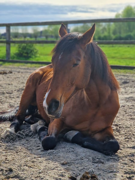 Te koop staat de 8-jarige vollebloedmerrie Giodonna (genoemd Donna) met een stokmaat van ongeveer 1,62 m. Donna is in 2021 uit de ren sport gestapt omdat ze onder te grote druk snel stress opbouwt. Ze is een ontzettend lieve, gevoelige en zeer oplettende merrie die graag werkt en wil gefallen. Vollbloed-typisch brengt ze temperament en uitstraling mee, maar ze heeft een duidelijke, rustige leiding nodig en is daarom geen beginnerspaard. Momenteel wordt ze recreatief gereden in westernstijl en is ze gewend aan werken met een bosal. Wat vooral positief opvalt, is haar gedrag tijdens grondwerk, longeren en in horsemanship – hier toont ze zich braaf, gemotiveerd en zeer coöperatief. Donna staat momenteel in een open stal in een gemengde kudde en is daar goed geïntegreerd. Er wordt gezocht naar een ervaren paardenmens, bij voorkeur met vollbloedervaring, die haar tijd, begrip en rust kan geven. Plaats gaat voor prijs. Voor meer informatie graag op aanvraag.